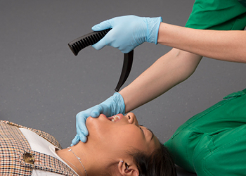 Unlike a standard laryngoscope, the innovative one-piece design of LiteScope™ eliminates the need to connect a separate blade and handle, thus saving valuable time in an emergency. Modelled on a Macintosh blade, the insertion technique is the same as for any standard laryngoscope with a Macintosh blade.